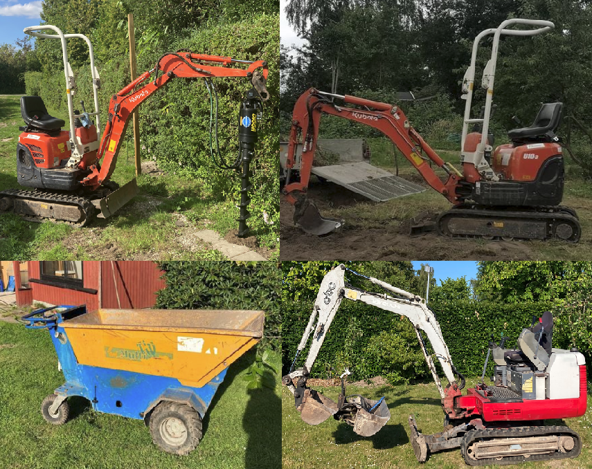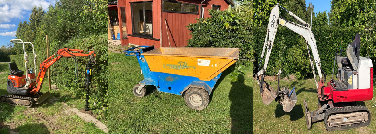 Jeg har valgt at udleje mine minigravere, motorbøre og tiptraillere ud til både private eller firmaer.