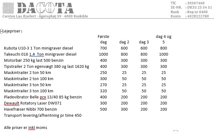 Inkl planer og en skovl